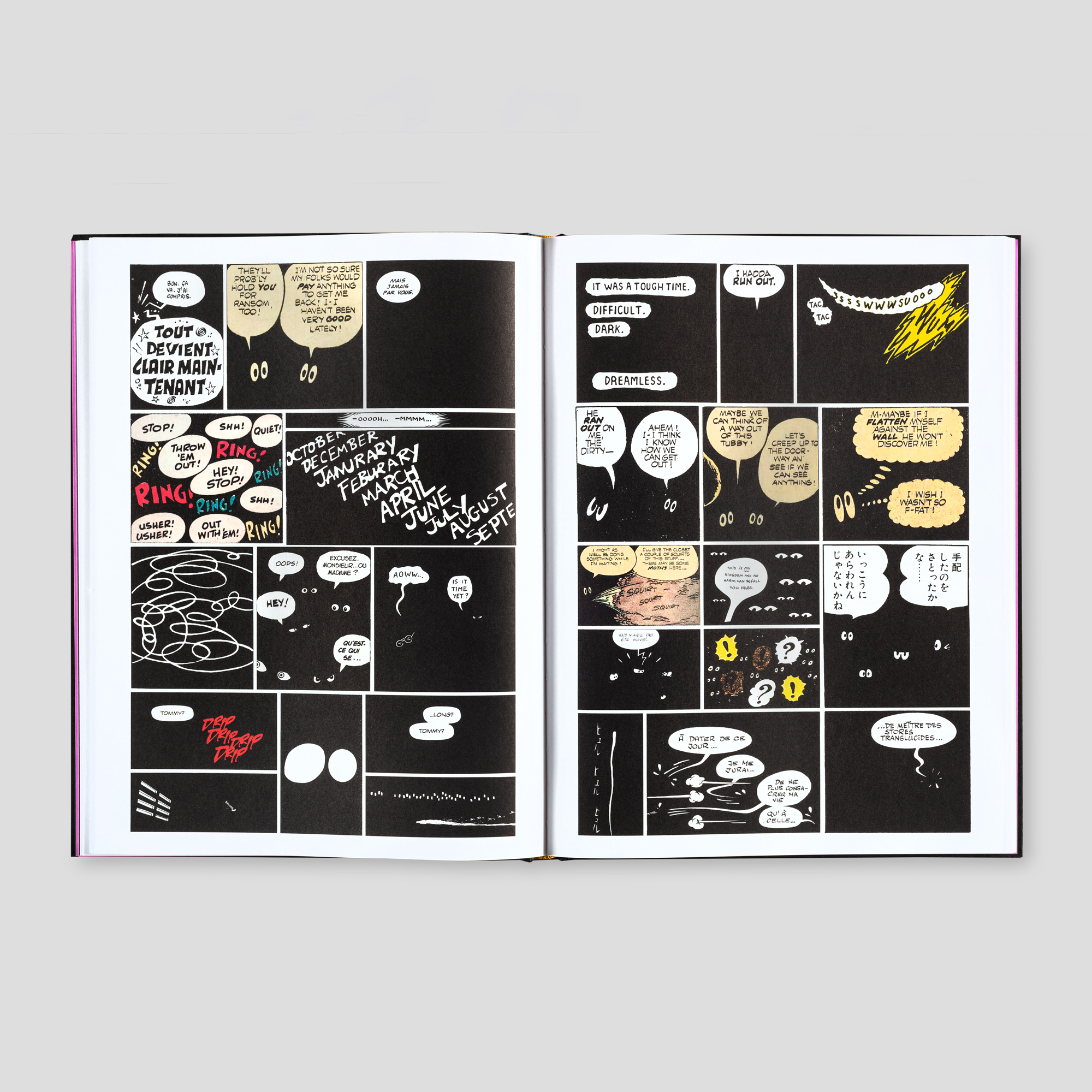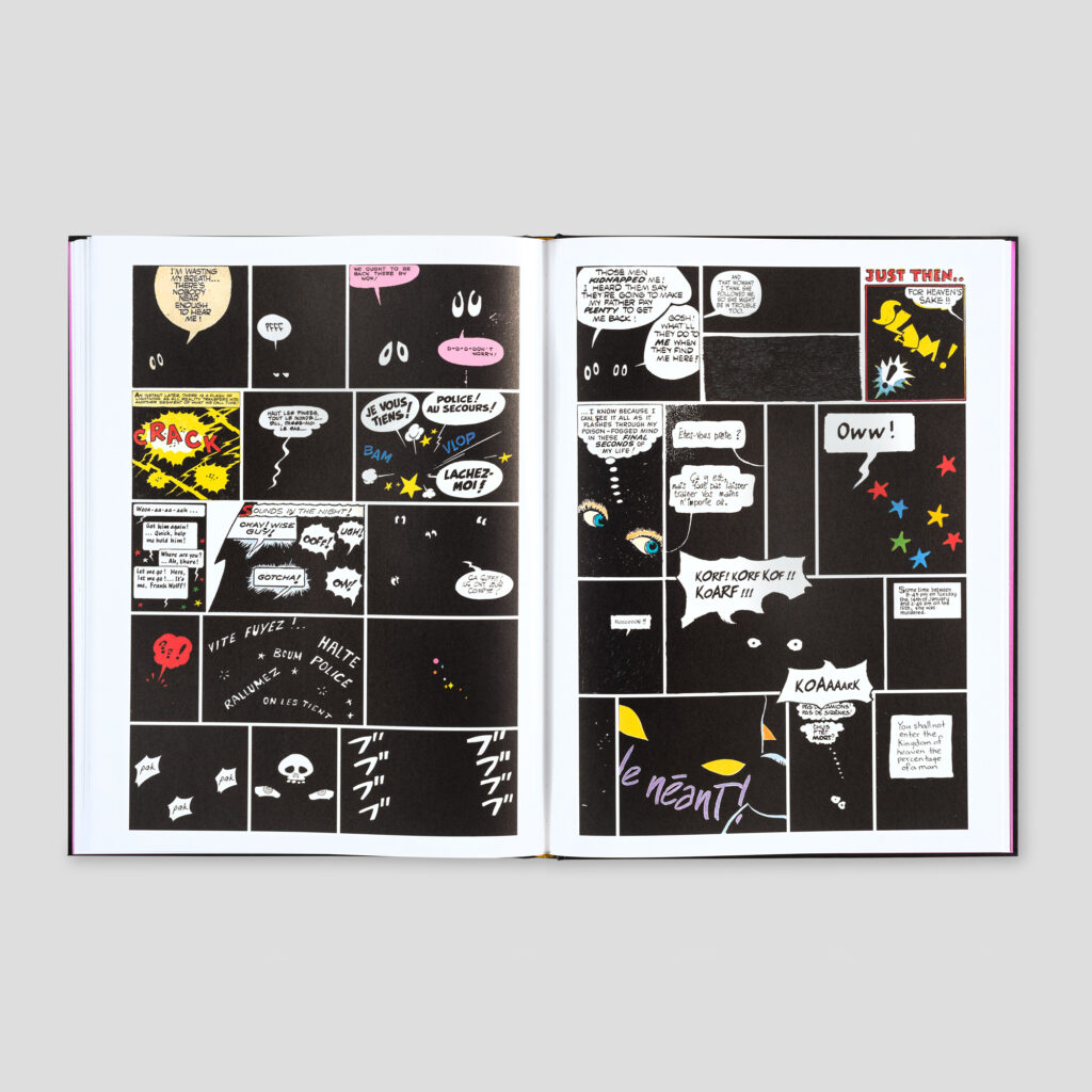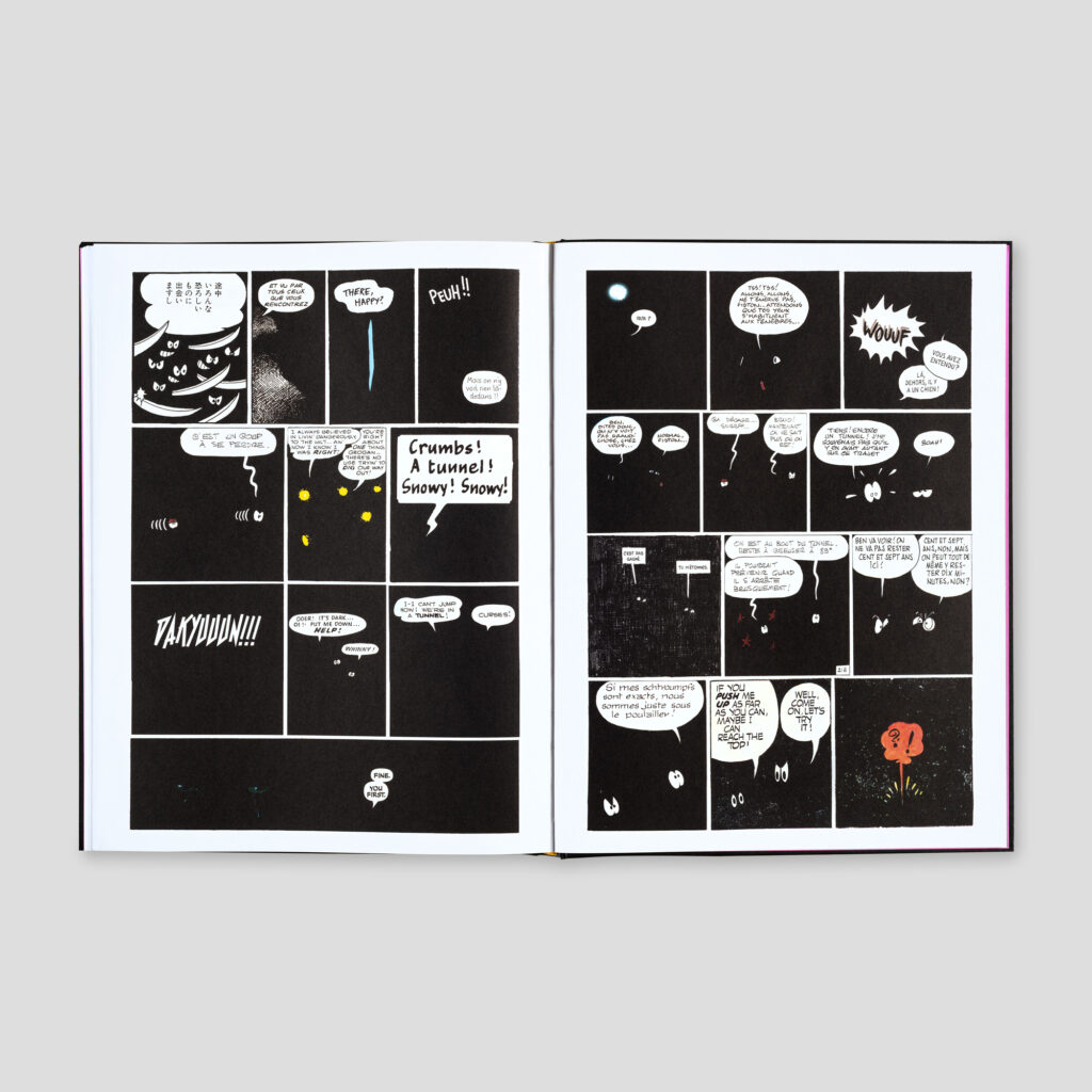 Tarwar is Manouach’s latest comic book that builds upon his previous work Abrégé de bande dessinée franco-belge while dramatically expanding scope to examine comics as a truly global medium. Using computer vision technology and his production studio to analyze over 12 million digitized comic book pages spanning continents, languages, and cultural contexts—from Korean webtoons and Indian superhero folktales to Brazilian quadrinhos and religious illustrated stories—the work identifies black panels as a remarkably omnipresent visual element that haunts comics across all traditions. These mysterious semantic spaces, whether signifying “a night without moon,” “loss of consciousness,” or rolling blackouts, function as spatiotemporal units where narrative pauses, creating moments of introspection, ambiguity, and the unspoken that challenge conventional narrative flow and invite readers to become co-authors. Composed entirely of black panels from this vast corpus, Tarwar transforms this ubiquitous motif into a playful and enigmatic visual meditation that transcends linguistic boundaries, market norms, and stylistic conventions, revealing how comics serve as a graphic universal language that weaves together the interconnectedness of globalized readership through shared threads of storytelling.
